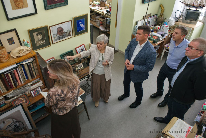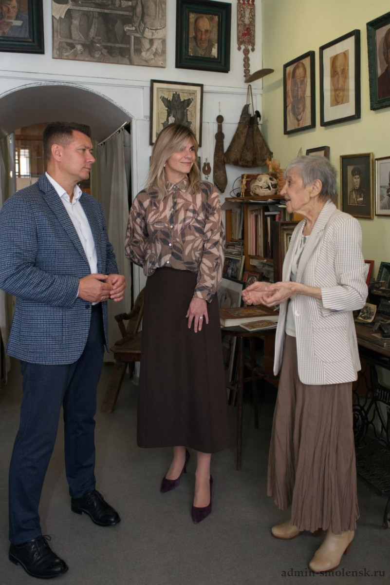 Заместитель председателя регионального Правительства Анастасия Гапеева побывала в мемориальной мастерской Народного художника Российской Федерации Вячеслава Самарина, которая на днях открылась в Доме художника в Смоленске.