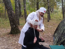 Например, в Партизанской деревне участники велоквеста под руководством волонтера-медика прошли мастер-класс по перевязыванию раненого бойца. На улице знаменитой лётчицы Марины Расковой исполнили песни военных лет под аккомпанемент баяниста. Одна из площадок называлась "История и современность" - там их ожидали вопросы, связанные с ролью Смоленщины в годы Великой Отечественной войны, и задание записать видеообращение в поддержку наших бойцов в зоне СВО.