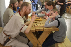 Наши коллеги представят популярные в эпоху викингов скандинавские настольные игры: дальдозу, хнефатафл и "Свинью" (она же "Счастливый домик"). Их популярность в то время подтверждают и археологические находки (например, фишки), которые можно будет увидеть во время мастер-класса, а также попробовать свои силы в качестве игрока и победить всех гребцов на ладье или одолеть могущественного короля.
