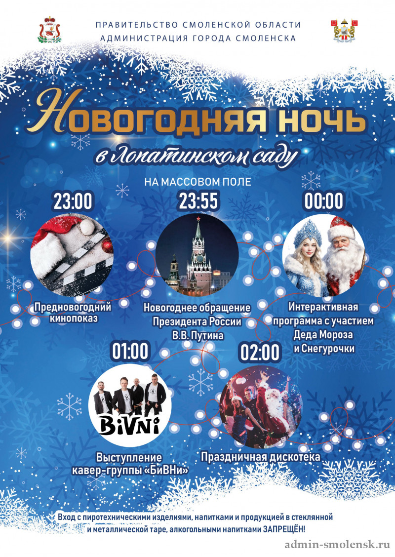 Сегодня, начиная с 23.00, на Массовом поле состоится предновогодний кинопоказ (вы увидите кинонарезку любимых новогодних фильмов и мультфильмов);