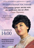 В 14.00 областная библиотека им.А.Т.Твардовского приглашает всех поклонников творчества Ольги Воронец в Музыкальную гостиную "Смоленска лучше места нет, где появилась ты на свет: Ольга Воронец". Наши коллеги подготовили книжную выставку, литературно-музыкальную композицию и викторину, посвященную жизни и творчеству Ольги Борисовны.