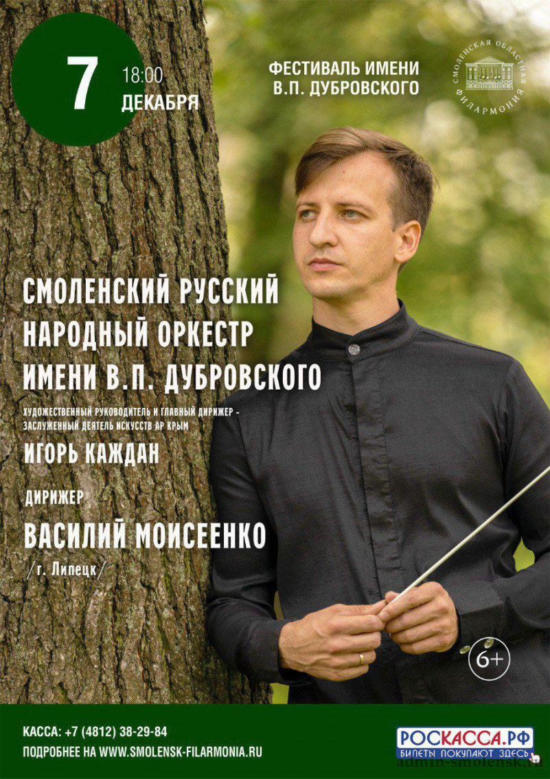 7 декабря в 18.00 ждём вас на концерт оркестра им.В.П.Дубровского под управлением дирижера, лауреата всероссийских и международных конкурсов Василия Моисеенко (г.Липецк). Вокалисты - Евгений Мишутин и Александр Ильющенков. В программе концерта прозвучат произведения Георгия Свиридова, Родиона Щедрина, Арама Хачатуряна, Петра Чайковского и других известных композиторов.