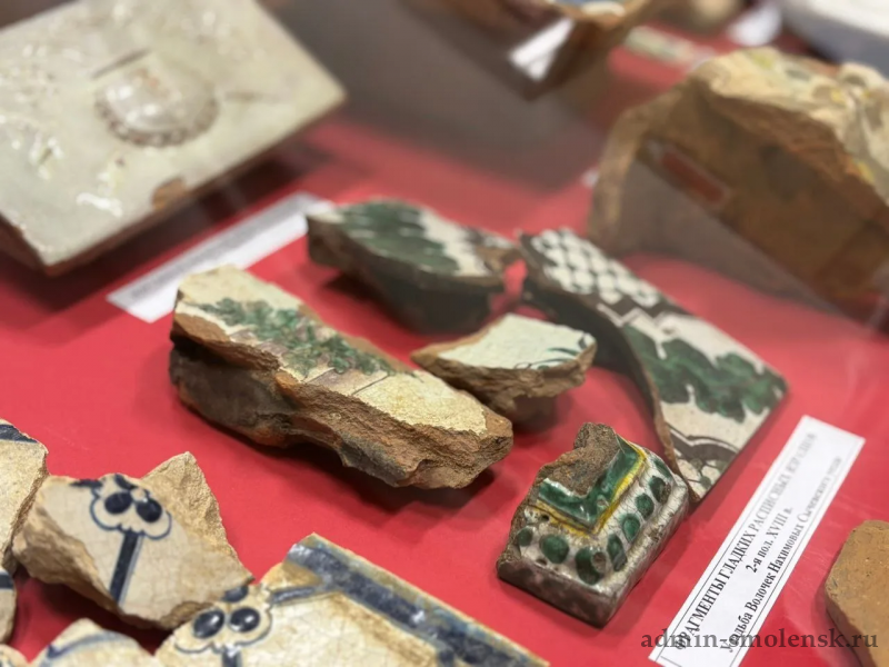 Отдельная витрина посвящена существовавшему во 2-й пол. ХІХ века вяземскому изразцовому производству завода Николая Дубинина.