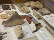 Здесь можно увидеть разнообразные виды изразцов - стенные, карнизные и поясные, а также изразцы-перемычки (валики), городки, ножки, фрагмент декоративного навершия изразцовой печи и даже изразцы, изображающие херувимов!