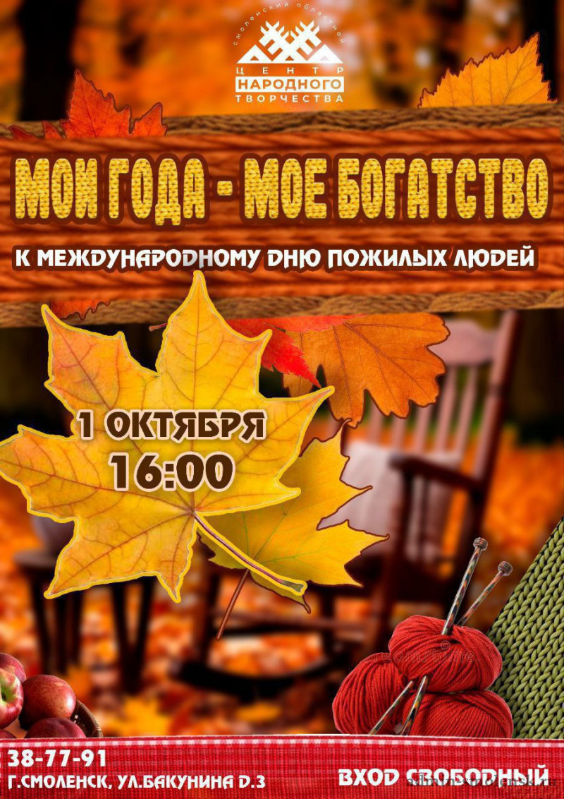Завтра, в Международный день пожилых людей, областной Центр народного творчества приглашает всех желающих на праздничную программу "Мои года - моё богатство".