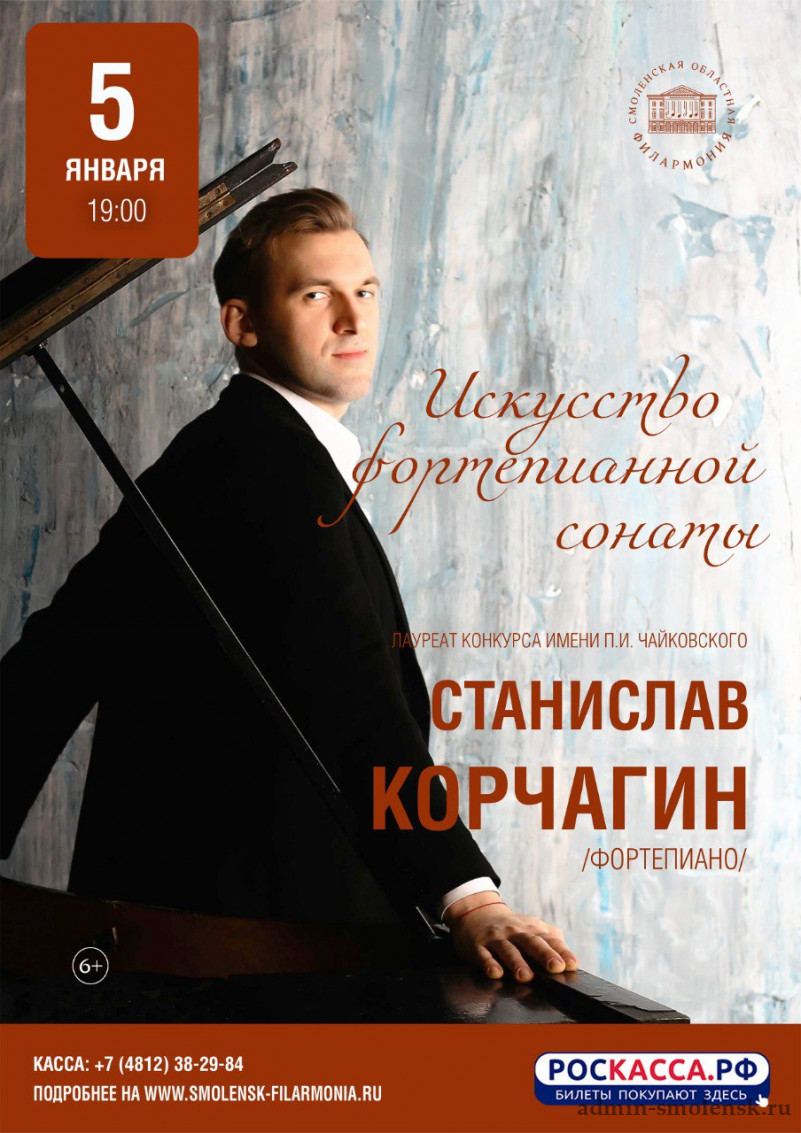 5 января в Смоленской филармонии выступит Станислав Корчагин - пианист яркой индивидуальности, стремительно восходящий на мировую сцену, лауреат XVII Международного конкурса имени Петра Чайковского, победитель престижных российских и международных конкурсов.
