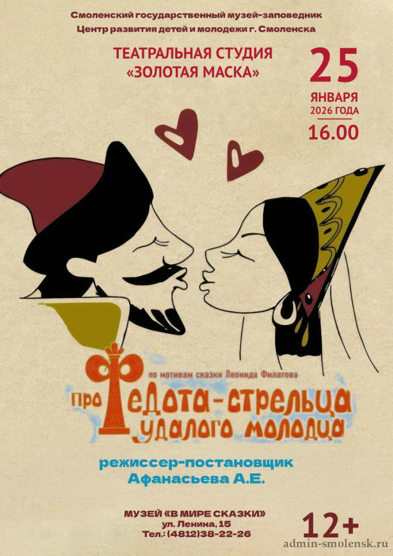 Музей "В мире сказки" в 16.00 приглашает всех на спектакль "Про Федота-стрельца, удалого молодца"