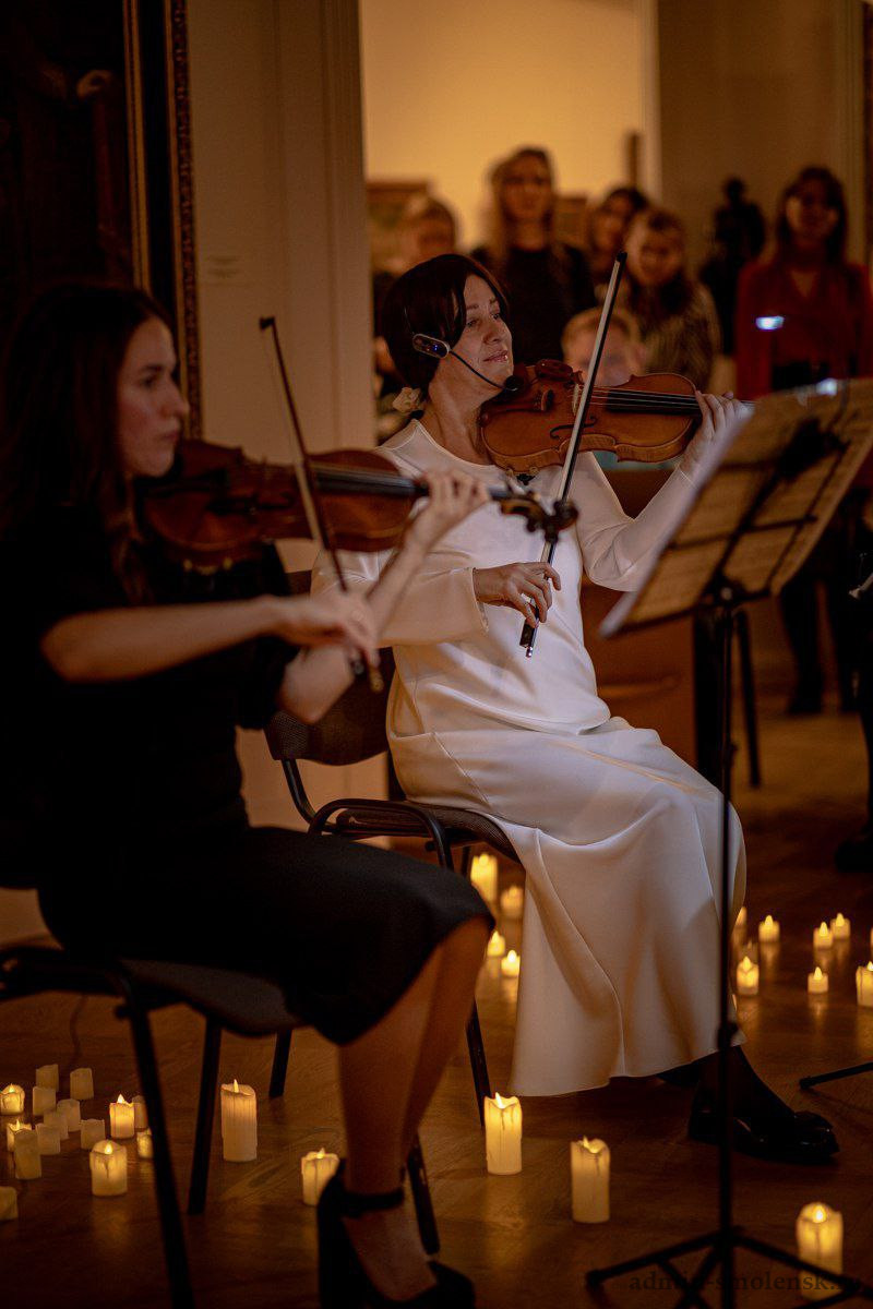 Самой популярной площадкой традиционно стала Художественная галерея. На ее мероприятиях побывали более 400 человек. Особый интерес вызвал концерт "Киномузыка при свечах". Своим виртуозным исполнением мелодий из советских и зарубежных фильмов зрителей буквально очаровали Светлана Арина (скрипка), Елизавета Власенкова (скрипка) и Анна Новикова (фортепиано). Как отмечают наши коллеги, этот концерт стал самым посещаемым событием в рамках "Ночи искусств" в учреждениях музея-заповедника.