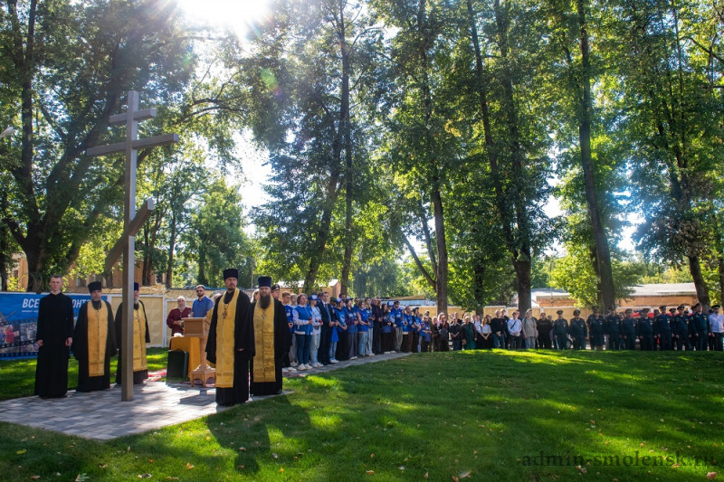 Чин освящения поклонного креста в сослужении присутствующего духовенства совершил митрополит Смоленский и Дорогобужский Исидор. Обращаясь к участникам церемонии, Владыка сказал: