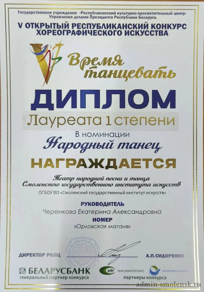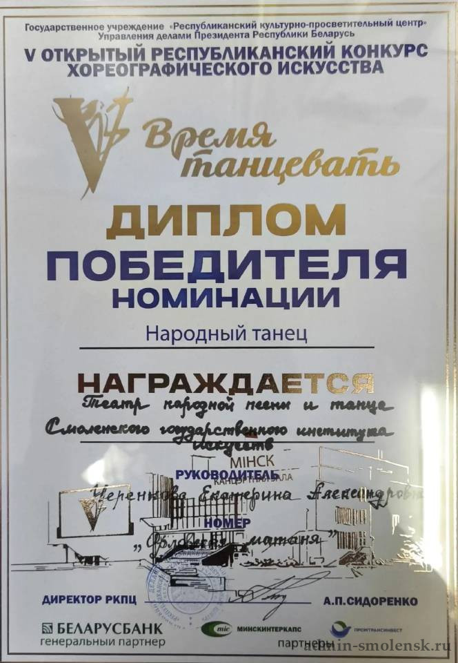 Смоляне - в числе победителей V открытого республиканского конкурса хореографического искусства "Время танцевать"!