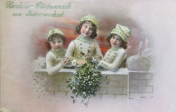 Некоторые открытки того времени содержат изображение первой страницы отрывного календаря с датой "1 января", другие представляют собой так называемые годовики - карточки, специально созданные для конкретного года, своеобразный аналог нынешних карманных календариков. Зачастую именно цифры с обозначением наступающего года были центральной частью декора - нередко их наносили тиснением и золотили.