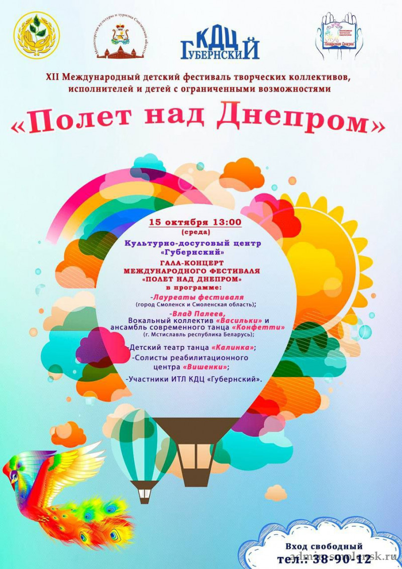 15 октября в КДЦ "Губернский" состоится гала-концерт XII Международного детского фестиваля творческих коллективов, исполнителей и детей с ОВЗ "Полет над Днепром".
