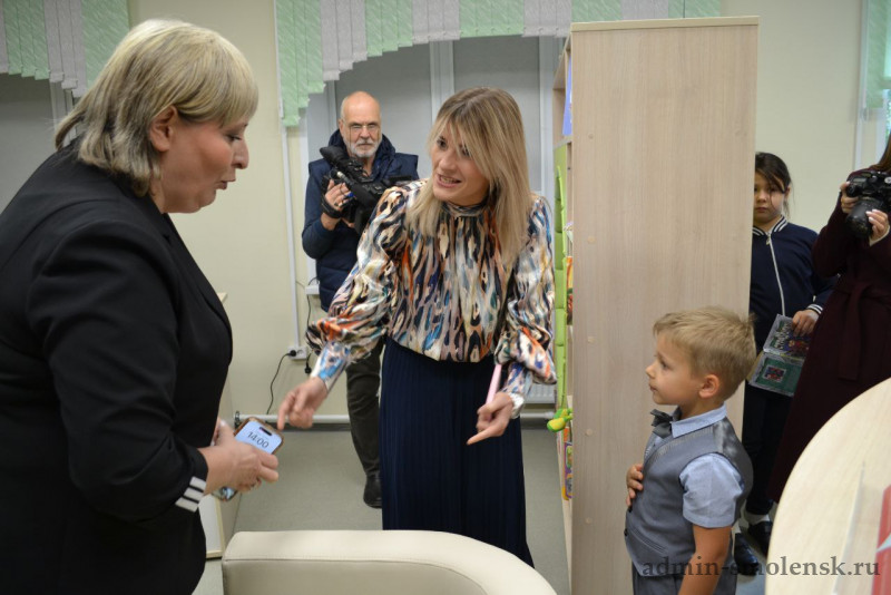 Приветствуя собравшихся, заместитель председателя регионального Правительства Анастасия Гапеева особо подчеркнула, что это уже 14-я библиотека нового поколения на территории Смоленской области, модернизированная по модельному стандарту в рамках президентского нацпроекта "Семья". На эти цели из бюджетов всех уровней было направлено почти 16 млн рублей.