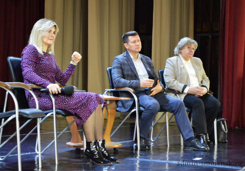 Перед ребятами выступили заместитель председателя регионального Правительства Анастасия Гапеева, министр культуры и туризма Михаил Ивушин и директор Смоленского музея-заповедника Тамара Орлова. Спикеры подробно рассказали старшекурсникам о карьерных возможностях для молодых специалистов, трудоустройстве, преимуществах целевого договора и действующих мерах поддержки, условиях программы "Земский работник культуры", а студенты, в свою очередь, задали интересующие их вопросы.