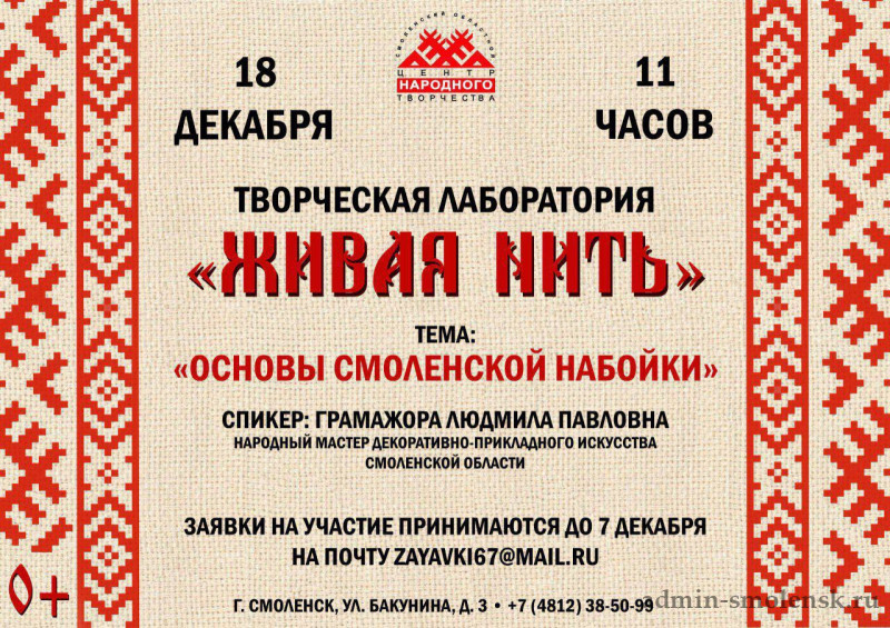 Заявки на участие принимаются на адрес электронной почты: zayavki67@mail.ru с пометкой "Живая нить".