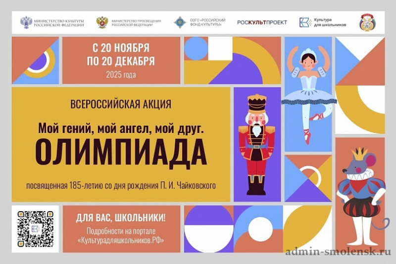 С 20 ноября по 20 декабря 2025 года в рамках межведомственного культурно-образовательного проекта «Культура для школьников» пройдет всероссийская акция «Мой гений, мой ангел, мой друг. Олимпиада», посвященная 185-летию со дня рождения величайшего русского композитора П.И. Чайковского.