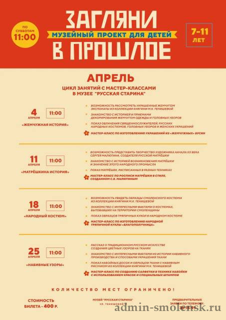 В этом месяце эстафету детского музейного проекта "Загляни в прошлое", инициированного нашим Смоленским музеем-заповедником, принял музей "Русская старина".